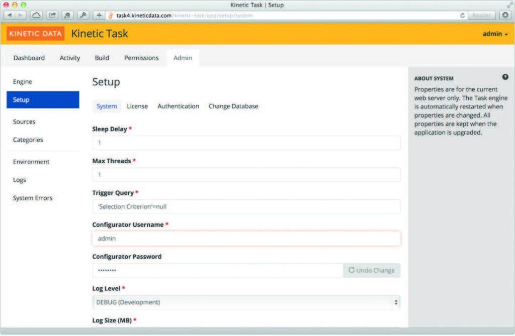 To meet this integration challenge, the Kinetic Task automation engine from Kinetic Data can act as the service integration hub, eliminating the complexities of managing and maintaining service integrations across the enterprise. Kinetic Task is a service automation engine that uses a simple, configurable approach to business process automation (BPA). Kinetic Task features an open architecture designed for ease of integration, flexibility and scalability. The focus of the design is to allow organizations to extend the functionality of the engine to any systems or processes needed, both internally and outside corporate boundaries.